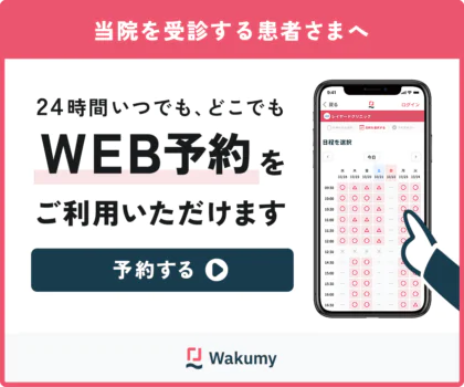 当院では、24時間WEB予約、WEB問診を導入しております。ご予約の方を優先して診療いたしますので、患者様の待ち時間を大幅に軽減することができます。また、WEB問診も導入しておりますので、ご来院後に問診をご記入いただく必要がなくよりスムーズに診療を行うことができます。